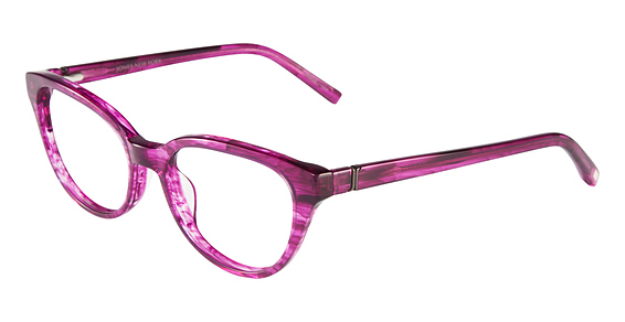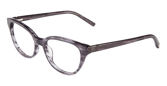 Jones New York Eyewear Eyeglasses Fluid frame design, sophisticated style. Double laminate acetate. Hand milled and polished. Sculpted plastic temple with signature Jones New York temple tip and logo plaque. Benefits: Tailored design for flattering feminine frame fit. Darker core color contrasts with the lighter surroundings adding dimension and design detail. Designed for proper ergonomic fit and detail.